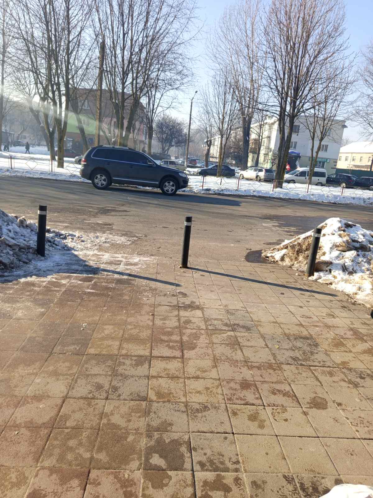 На автобусній зупинці "Поліклініка" на вул. Б.Хмельницького було проведено роботи по забезпеченню доступу до місця посадки пасажирів та прочищені та підсипані пішохідні доріжки.